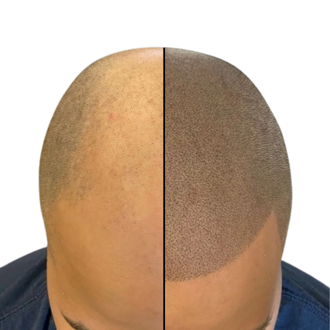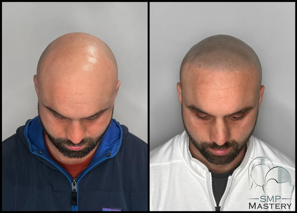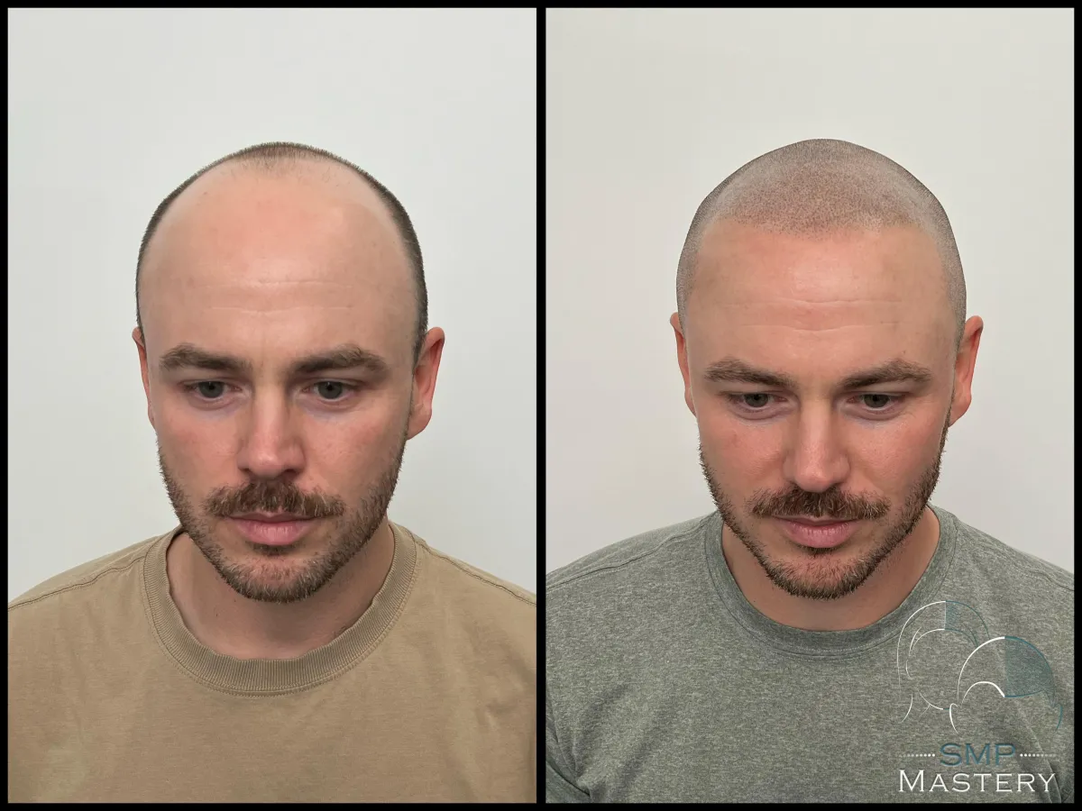 Basically, SMP reduces the contrast between your hair and skin, making it look like you've got a full head of hair, even if you don't.